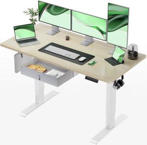With plenty of room to hold multiple monitors and devices, the Marsail Standing Desk is an electric and adjustable stand-up desk with a convenient drawer in the front to hold essential items. The desk offers durable performance, is guaranteed by 50,000 lift tests, and can hold up to 176 lbs.