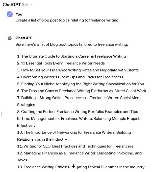ChatGPT has quickly become one of the most popular ways to quickly generate blog post ideas. Enter a prompt and the tool will create a list of blog topics on any topic. Ideally, you should be as detailed as possible with your prompt to ensure that the topics align with your niche.