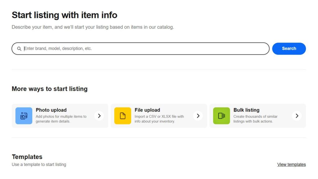 Listing an items starts with describing it. Enter the item’s brand (if known), size (if applicable), and other relevant details. Try to be as concise as possible, sticking to terms that a buyer might type into the search bar.